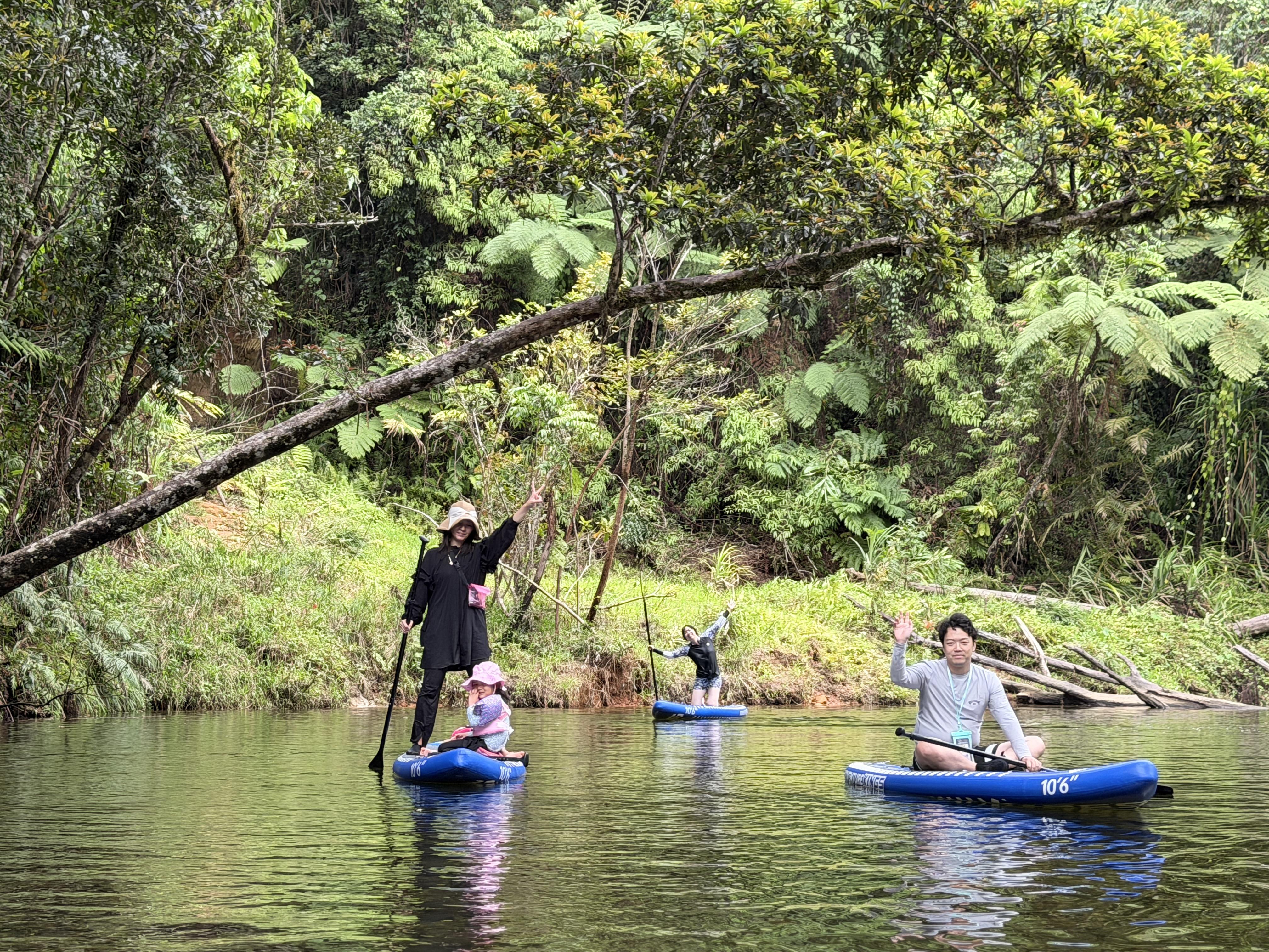 ダイビングインストラクターの資格を持ったガイドも一緒に川に入り、救命ボードを持って常に安全に配慮しているので泳げない方でも安全に楽しく遊べます。