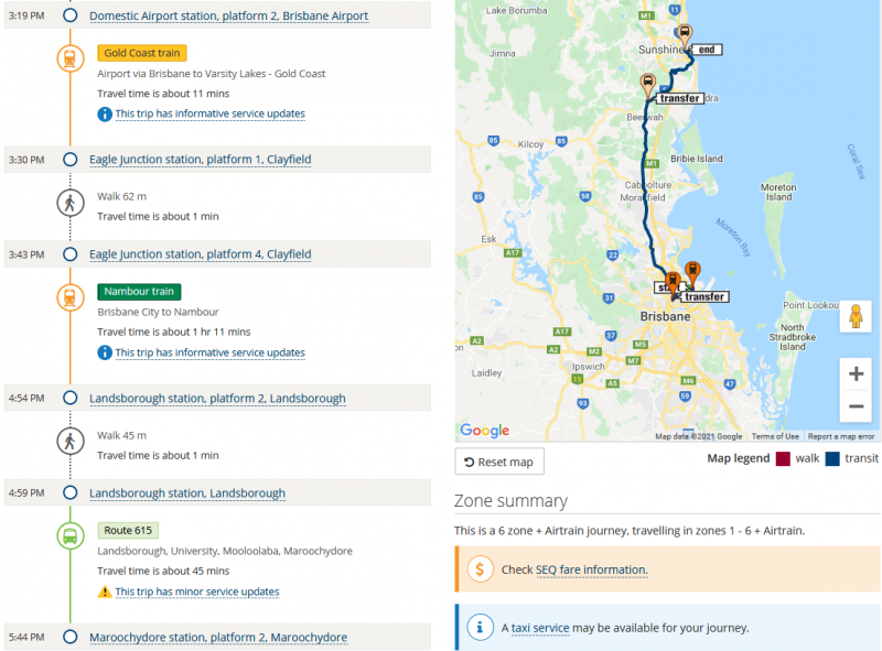 ブリスベン空港からGold Coast Trainに乗ってイーグルジャンクションまで行き、次にNambour Trainに乗り換えます。