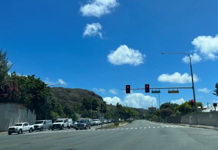右側の木は、電線に引っ掛からないように幹が剪定されています。