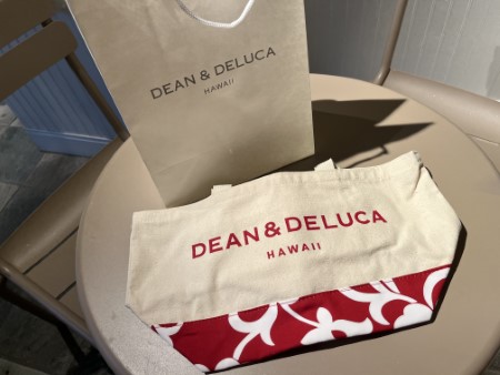 ハワイ 「ディーン&デルーカ」赤のハイビスカスバッグ