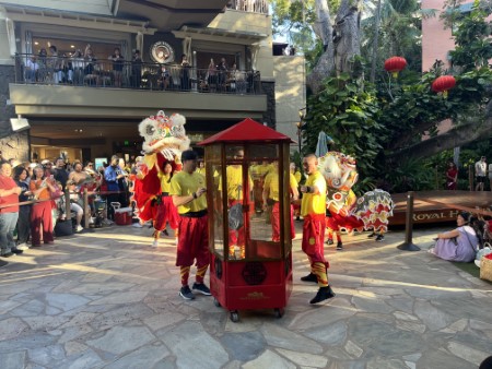 2月17日(火曜日)の旧正月の当日、ロイヤルハワイアンセンターでは、旧正月のイベントのライオンダンスが有りました。