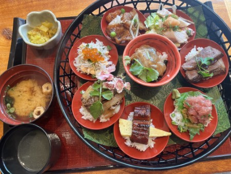 真ん中の丼には鯛の出汁を掛けて食べます。