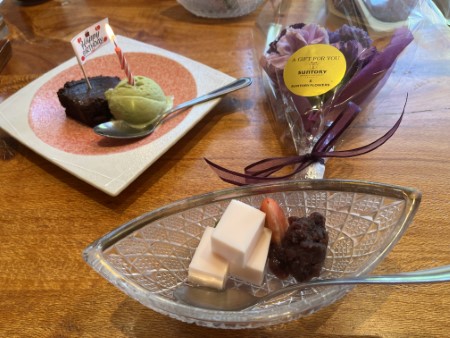 それとお誕生日のサービスで、アイスクリームと花束も頂きました。