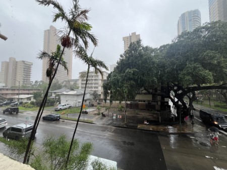ワイキキでも水が溢れて、道が川になっていましたが、前回のように強風が吹かないだけまだましでした。