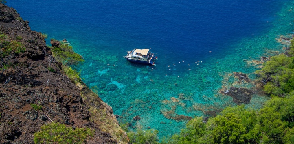 ハワイ島の名所、キャプテン・クックゆかりの歴史的な海洋保護区「ケアラケクア湾」でシュノーケリングを楽しむツアー。船上から眺めるコナ沿岸の風景も素敵です。ハワイ島の美しい海をたっぷり満喫出来る朝食&BBQランチ付きの4.5時間の午前ツアー、カジュアルな3.5時間の午後ツアーからチョイス可能です。