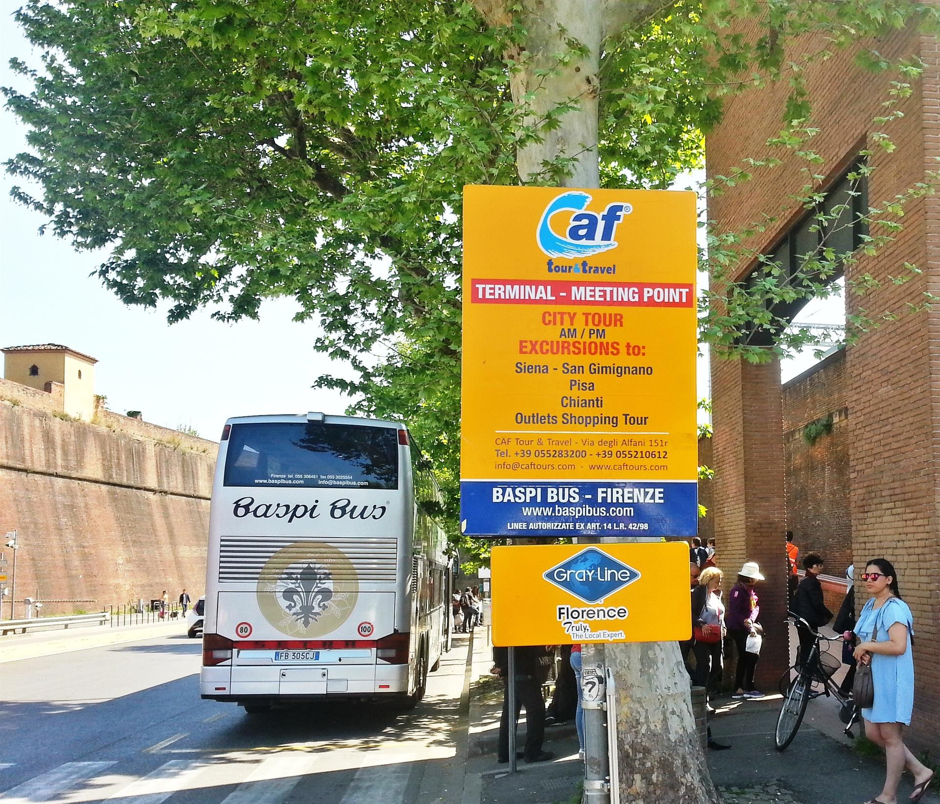 13:15 モンテルンゴ広場 Caf Tour & Travel - Gray Lineの黄色い看板前集合13:30 ツアー出発-斜塔(外観見学)-洗礼堂(外観見学)-大聖堂(入場見学)-自由散策19:15 集合場所で解散