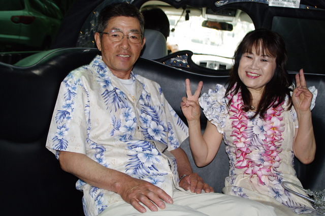 | 僕(新郎)の家族(6人)とかみさんの家族(4人)の送迎のためにこのツアーを依頼しましたが、みんな初めてのリムジンに大満足してくれたようです。 料金も他社よりも安かったのでよかったですし、トラベルドンキーのお客はギャラリアの隣にあるトラベルドンキーオフィスでボディーボード、浮輪、ゴザなど無料で貸してもらえましたので、そのサービスも我がファミリーには好評でした。 |