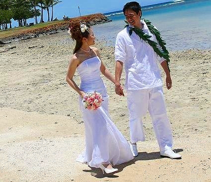 | 朝からの撮影に申し込みました。衣装は比較的小さなお店で、たくさんの衣装がならべられており、どれがいいか迷いました。たまたま選んだドレスは新品のものでした。となりに美容室がありセットをしてもらいます、髪型など自分がしてほしいのがあれば、先に考えておいたほうがいいかもしれません。私はそこでもなやんでしまいました、ドレスなど選ぶのに時間がかかりすぎてしまう人もいるそうです。なにがよかったかというと。撮影です、ハワイのビーチデいろんなポーズを撮りますが、できあがった写真をみると、えーっっすごいーって主人とふたりで感動しました、すごく表情ゆたかだったり、周りに人もいたはずなのに二人っきりみたいとか、主人の足が長く見えるとか、本当にやってよかったと思います。写真はCDでくれるので、私は日本に帰ってからフォトブックにしました。現地でも別料金でアルバムを作ってくれるようですが。日本で友達が写真を撮りましたが、1枚いくらで結構なお金になるといってました。それにくらべるとぜんぜんお安いと思います。 | |||||