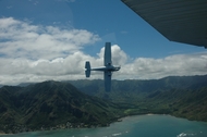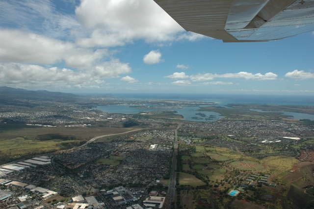 | 新婚旅行以来6回目のハワイ旅行ですが、前回の2年前に来た時に、一度空からのハワイを見てみたいと現地で申し込みましたが、旅程の都合で予約できず、今回ぜひともセスナの遊覧飛行をすべく事前に予約しました。飛行中は風の向きで少し揺れましたがとくに問題なく、地上でのドライブでは見れないオアフ島の紺碧の海と空、緑と茶褐色の山地を空から見ると新たな感動を覚えました。また、パイロットの方の太平洋戦争開戦時の真珠湾攻撃の飛行ルート等、興味深い説明も聞き、大変有意義な遊覧飛行を楽しみました。 | |||||