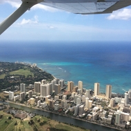 | 当日、集合時間ピッタリにワゴンで迎えに来てくれてホノルル空港へ行きました。簡単なレクチャーがあり、セスナ機に乗り込みましたが、まさか自分が操縦席に座れるとは思いませんでした。 パイロットの方は副操縦席でフォローとガイドをしてくれて、空から見るオアフ島はすごくキレイで最高に感動しました。次回行った時も必ず参加しようと思っています。 | |||||